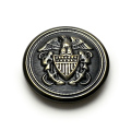 - 錨に囲まれた楯の上に翼を広げた鷲が立つ、立体的なデザインのブレザーボタン。