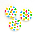 金太郎飴のように、柄を組み上げて成型したボタンは、側面も裏も模様入りで仕上がっています。 今回特別な生産工程を経て作った商品ですので、在庫数のみの完全数量限定販売とさせていただきます。 水玉柄のボタン【白×カラフル】 ※複数個入り1セットにした商品になります。 [サイズ展開:11.5 15 25mm] ツヤ(光沢感)あり フチなし 中央につれて少し高くなる形状 ※サイズによって穴数・入り数が異なります。 お確かめの上ご購入下さい。(ご購入後の交換は対応できかねます) 11.5mm 1セット10個入り 厚み:2.7mm 4穴 15 mm 1セット5個入り 厚み:3.2mm 2穴 25 mm 1セット3個入り 厚み:4.5mm 2穴【完売】 |