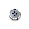 | 貝調をベースにしたボタンをシルバー色の金属リングでかしめています。