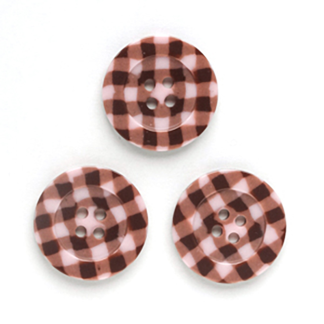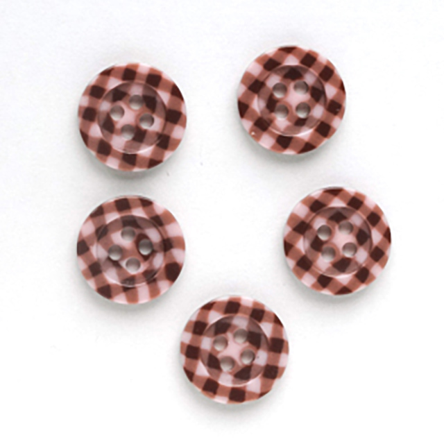 ギンガムチェック柄のボタン【ピンク×茶】 ※複数個入り1セットにした商品になります。